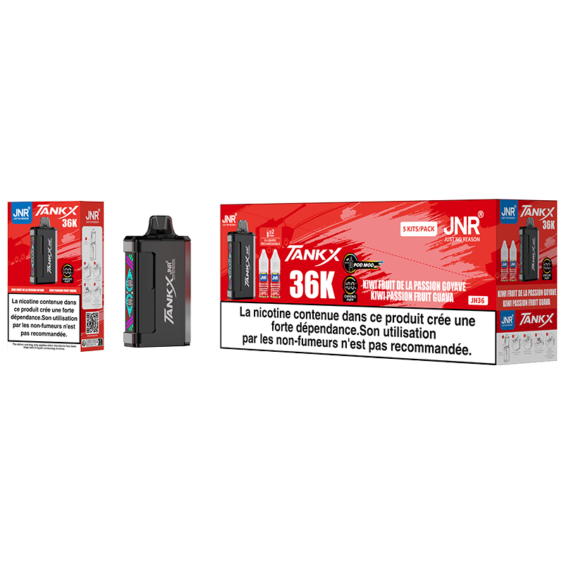 | Description | Puff JNR Tank X 36K Kiwi Passion Fruit Guava : exotisme, puissance et autonomie maximale